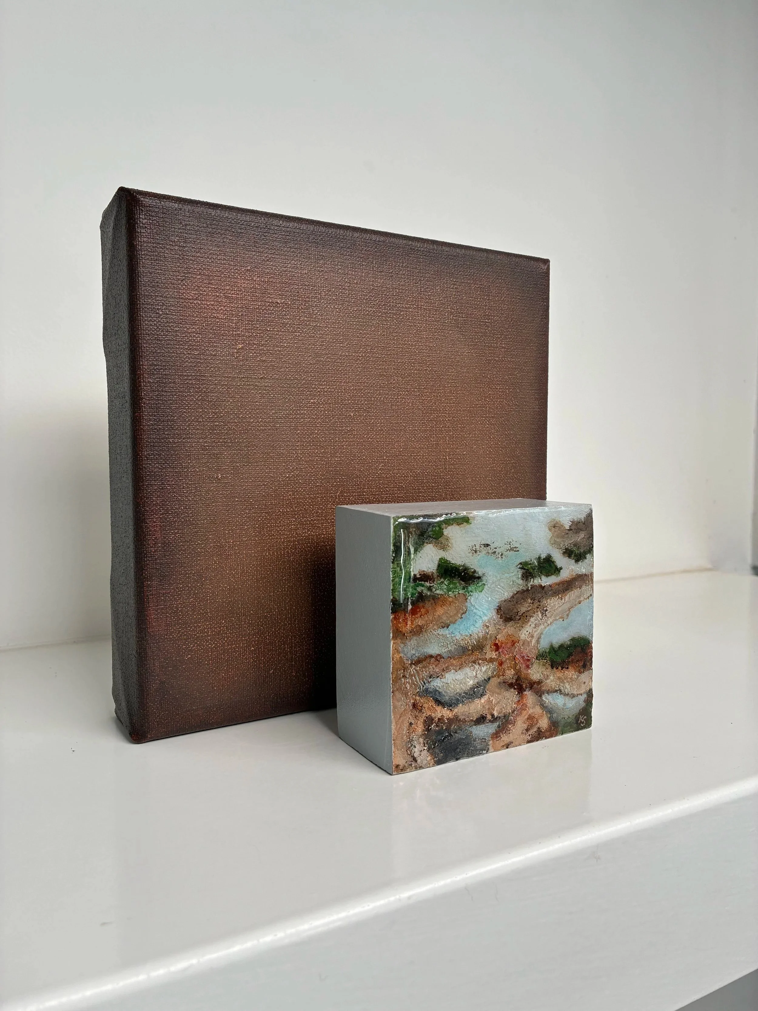 Coastal Fragments: Acrylic paint, mixed media, with an epoxy finish on wood,