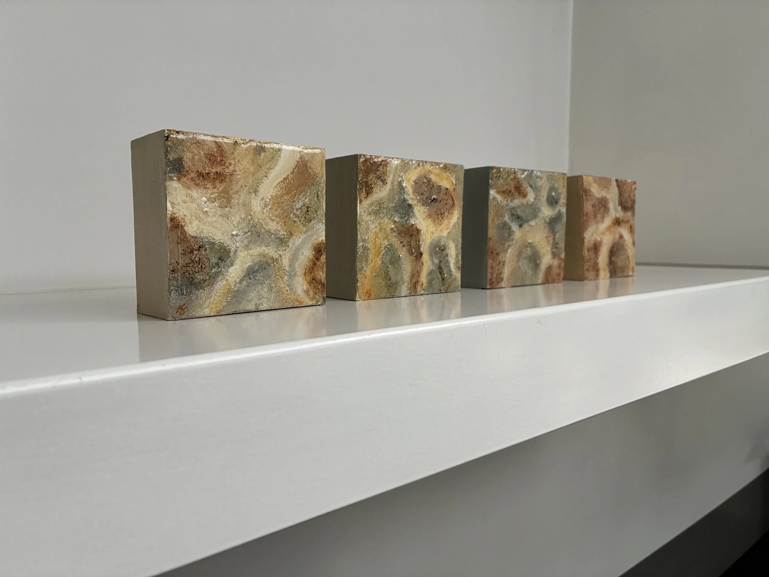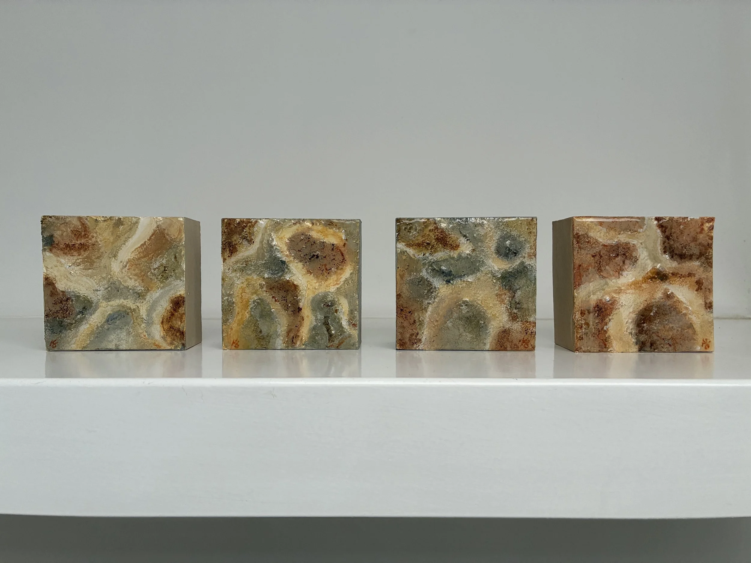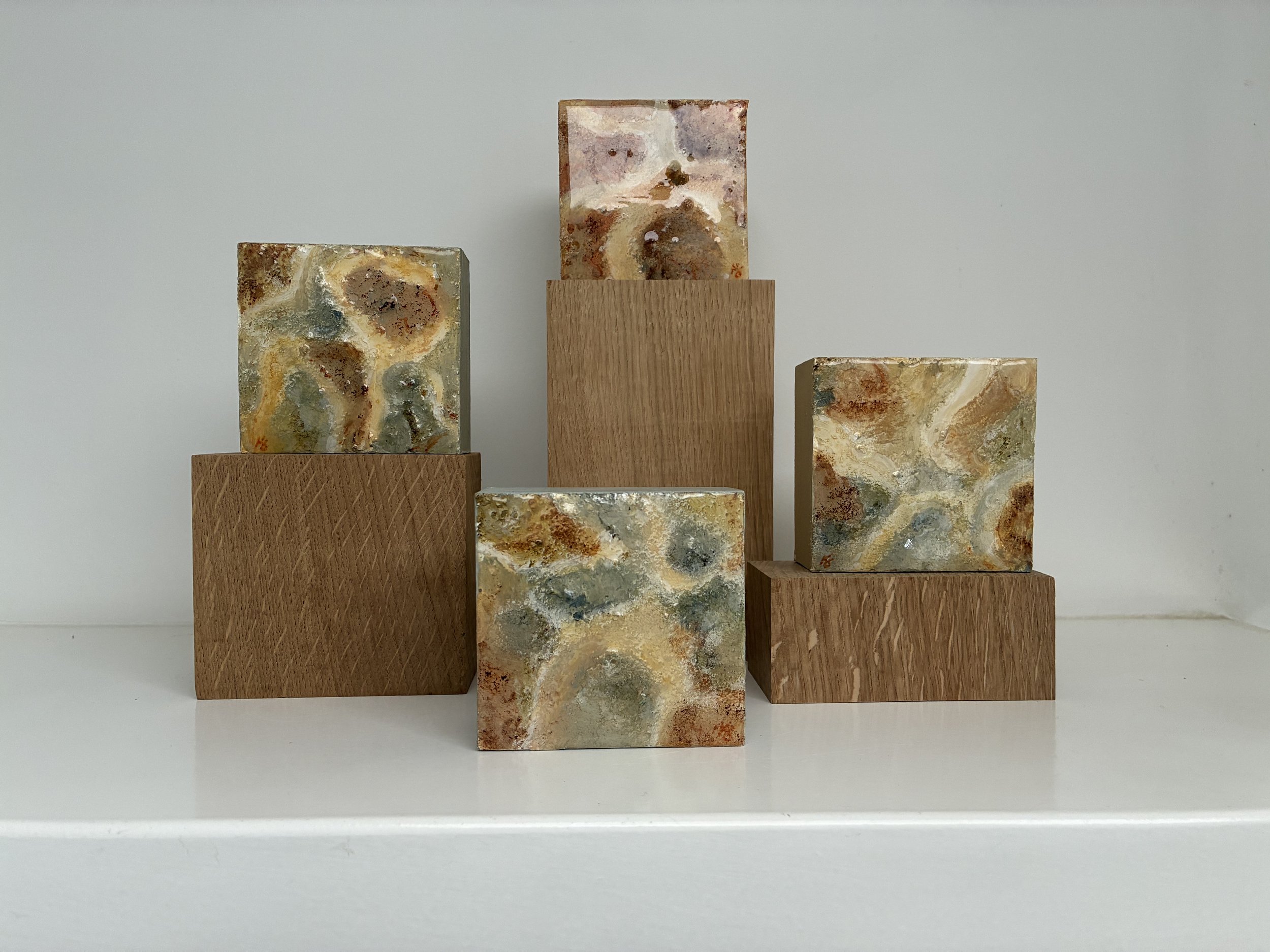 Acrylic paint, mixed media, finished with a layer of epoxy on wood